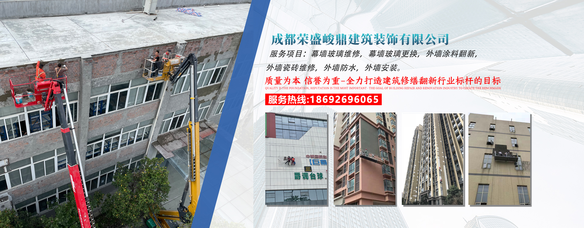 成都榮盛峻鼎建筑裝飾有限公司始終堅持發(fā)揚工匠精神的專業(yè)施工團隊,專業(yè)于舊建筑修繕翻新的研究與實踐;服務(wù)包括外墻維修、外墻翻新、外墻磚維修、外墻防水處理、內(nèi)外墻涂料維修、幕墻玻璃維修、門...